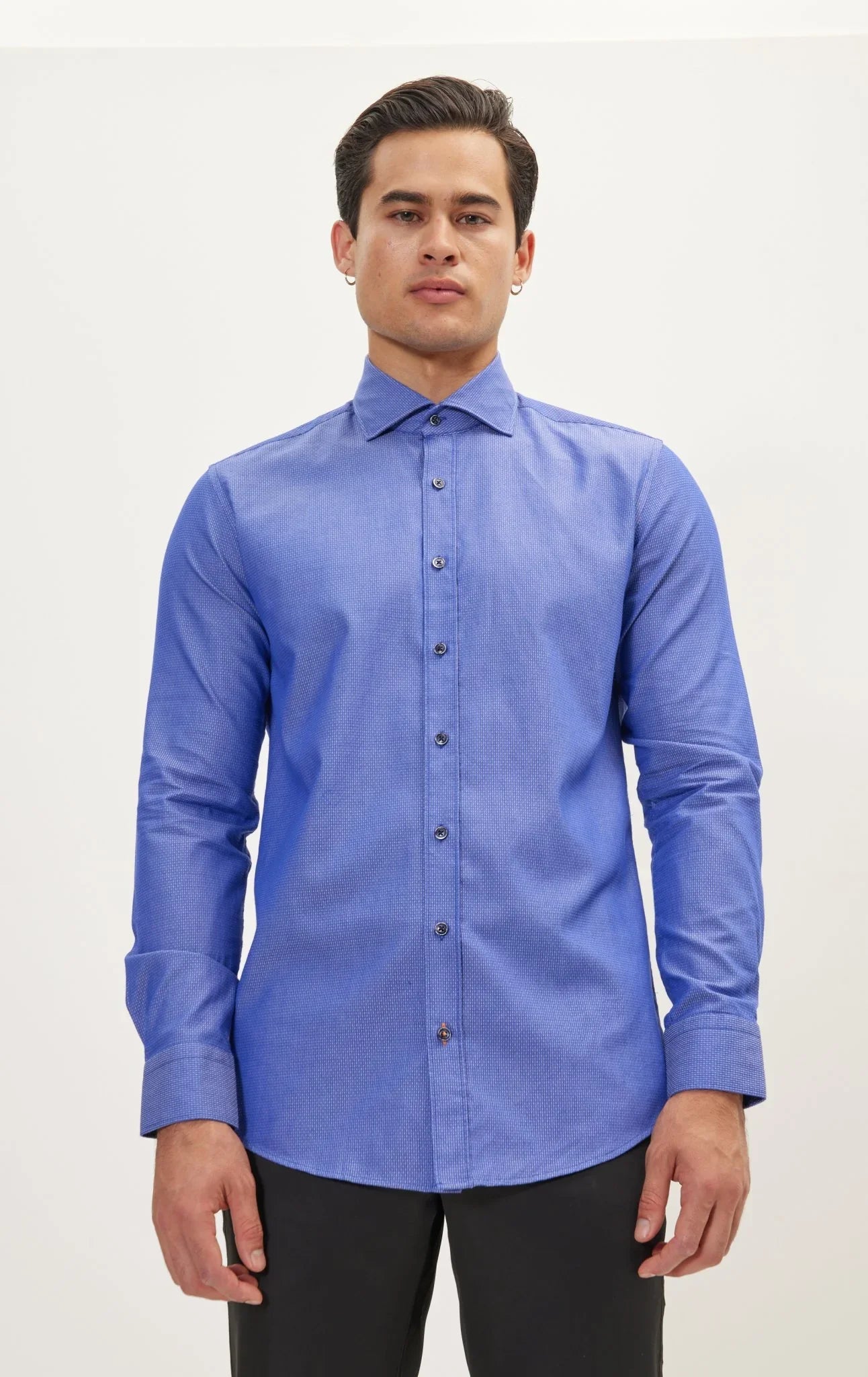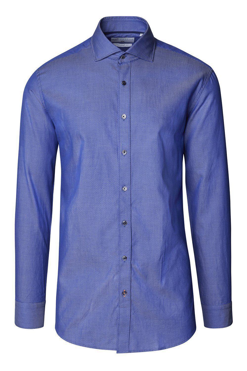 Jacquard Cotton Tonal Button Dress Shirt - Dark Blue