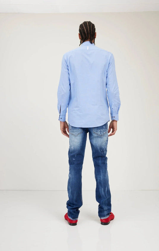 Wear this casual shirt when you're planning to go to happy hour after work - a quick roll of the cuffs reveals a classic Mr. Cool look and instantly lightens the mood. Fitted with removable collar stays to keep your collars neatly in place. Cut for a neat slim fit and detailed with hand sewn buttons....