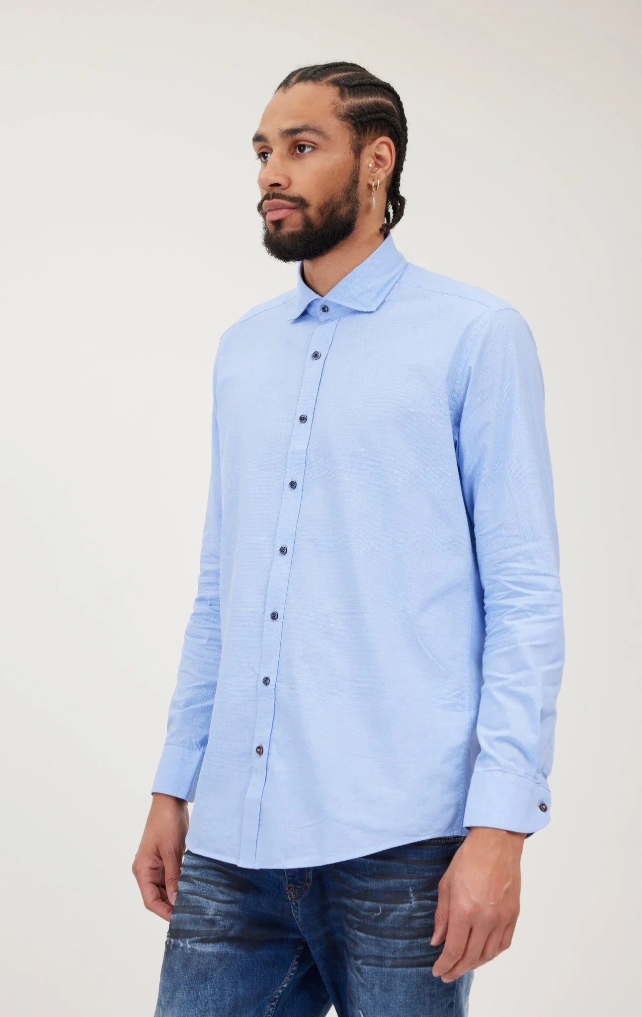 Jacquard Cotton Tonal Button Dress Shirt - Light Blue
