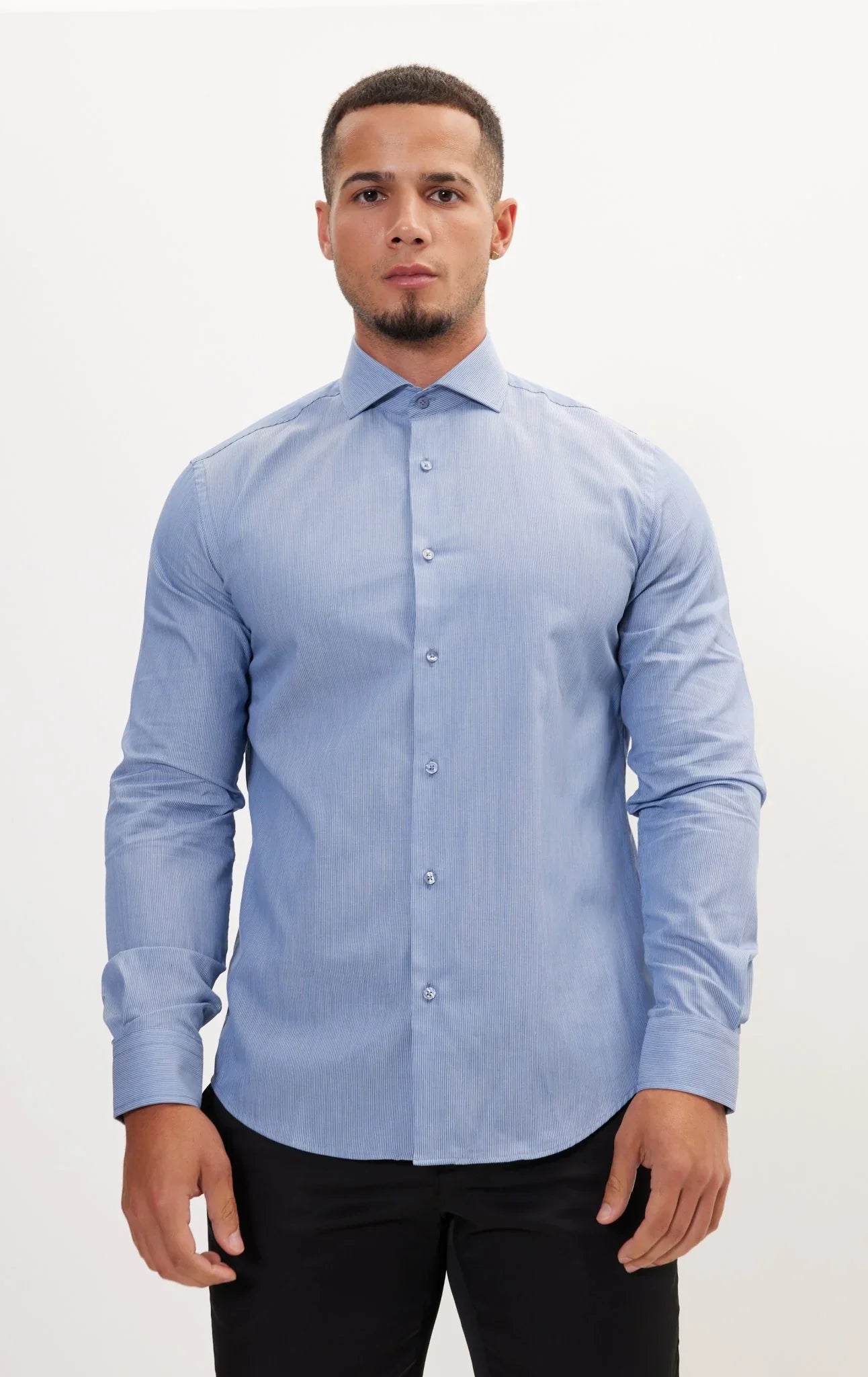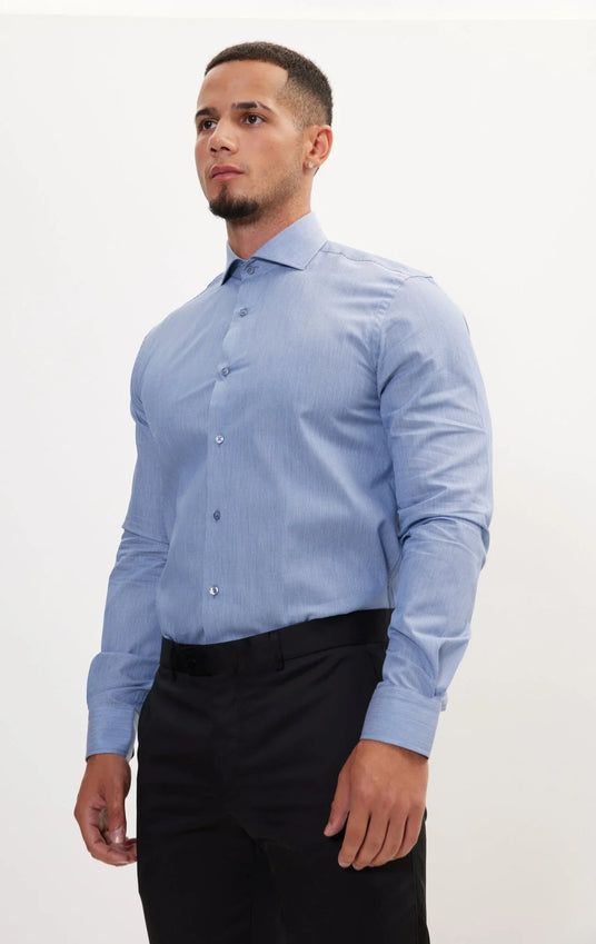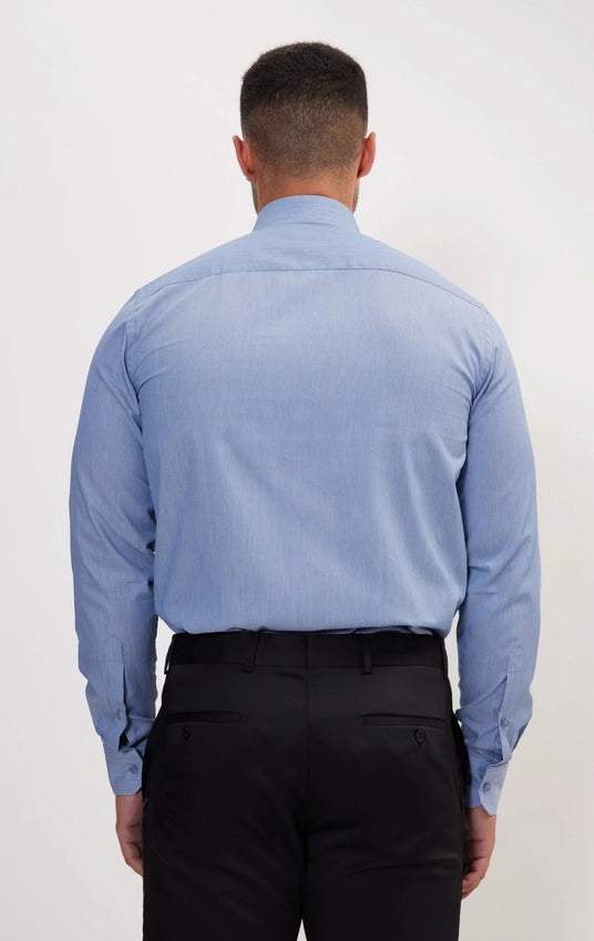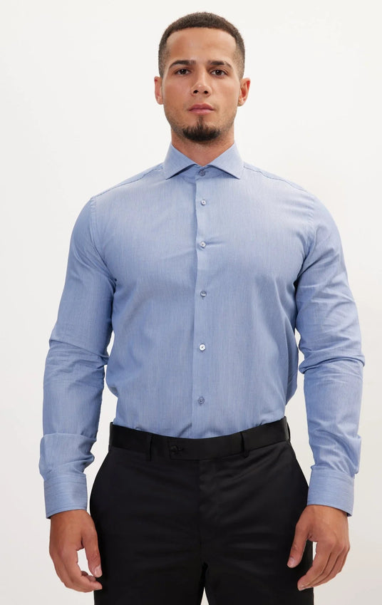 Pure Cotton French Placket Spread Collar Dress Shirt - Navy White Hairline