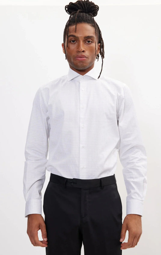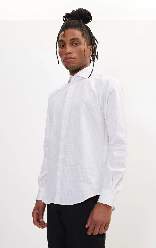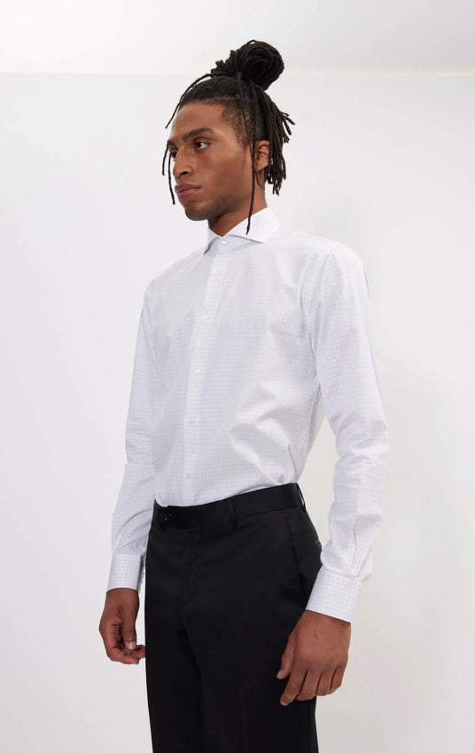 A superior twill single jersey cotton shirt with a super-smooth finish. Classic tailoring at its best.   Our model Brian is 6'2'' 36 Chest and he is wearing a Medium size. 100% Cotton Tailored Fit Italian (Spread) Collar French Front (French Placket) WHITE WINDOW 3  AN4903-WHTWND3