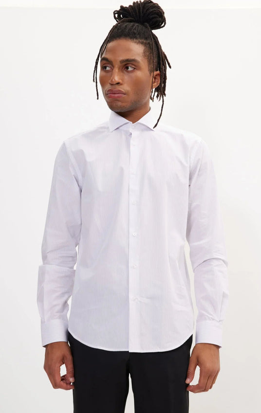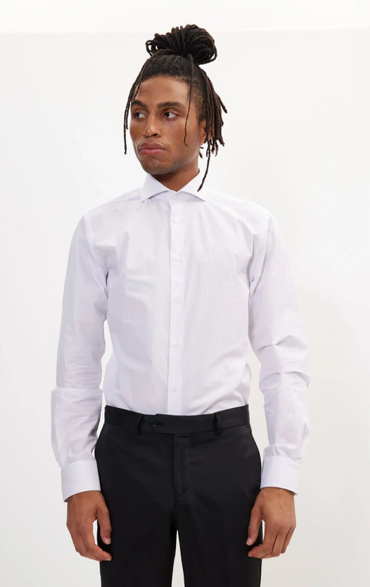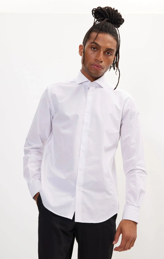 A superior twill single jersey cotton shirt with a super-smooth finish. Classic tailoring at its best.   Our model Brian is 6'2'' 36 Chest and he is wearing a Medium size. 100% Cotton Tailored Fit Italian (Spread) Collar French Front (French Placket) WHITE WINDOW 2  AN4903-WHTWND2