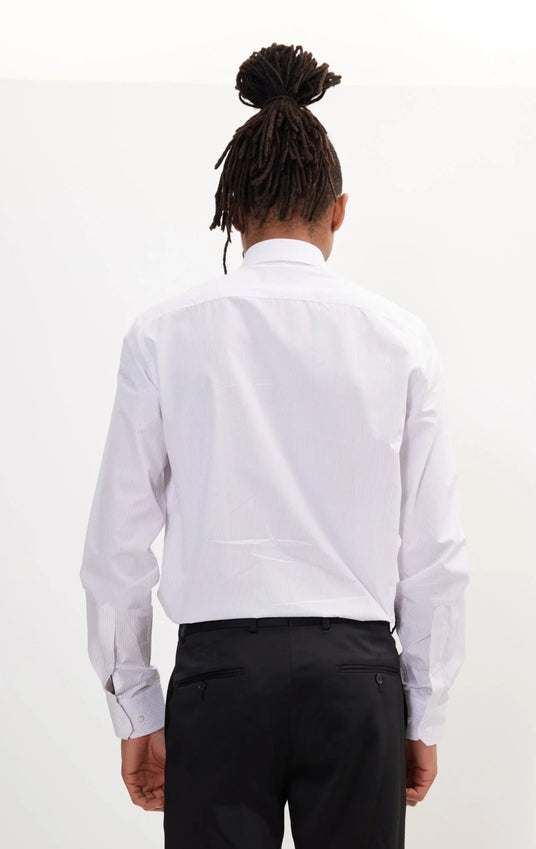 Pure Cotton French Placket Spread Collar Dress Shirt - White Graph