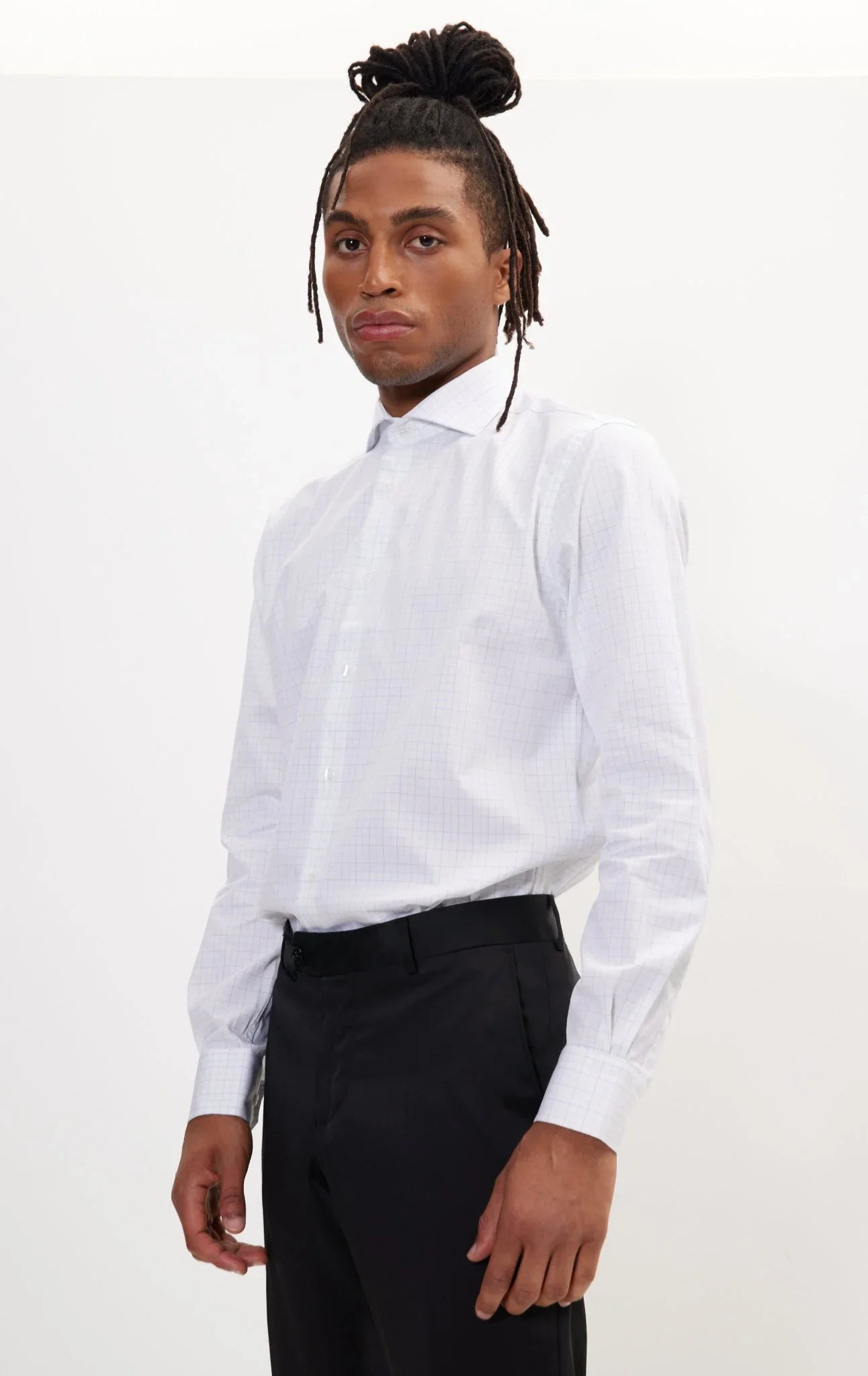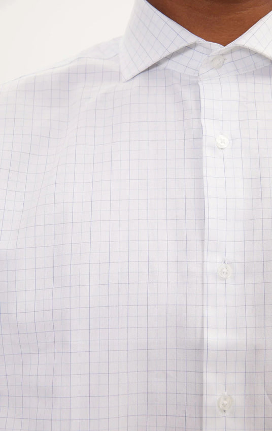 Pure Cotton French Placket Spread Collar Dress Shirt - White Graph