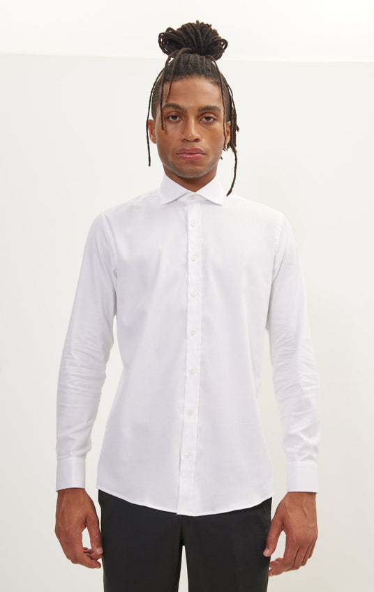 Pure Cotton Front Placket Spread Collar Dress Shirt - White