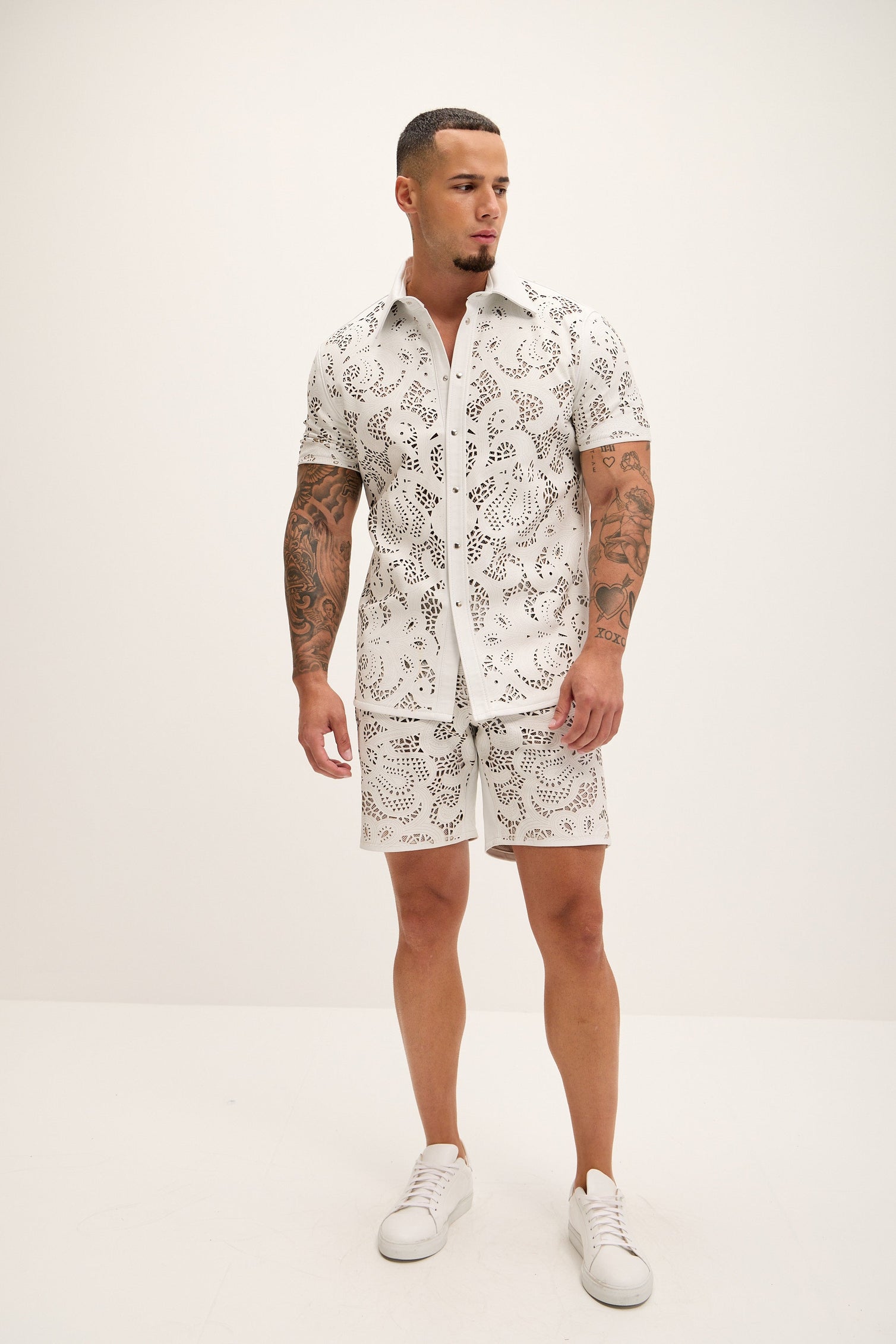 Cut-out Fitted Leather Shorts - White