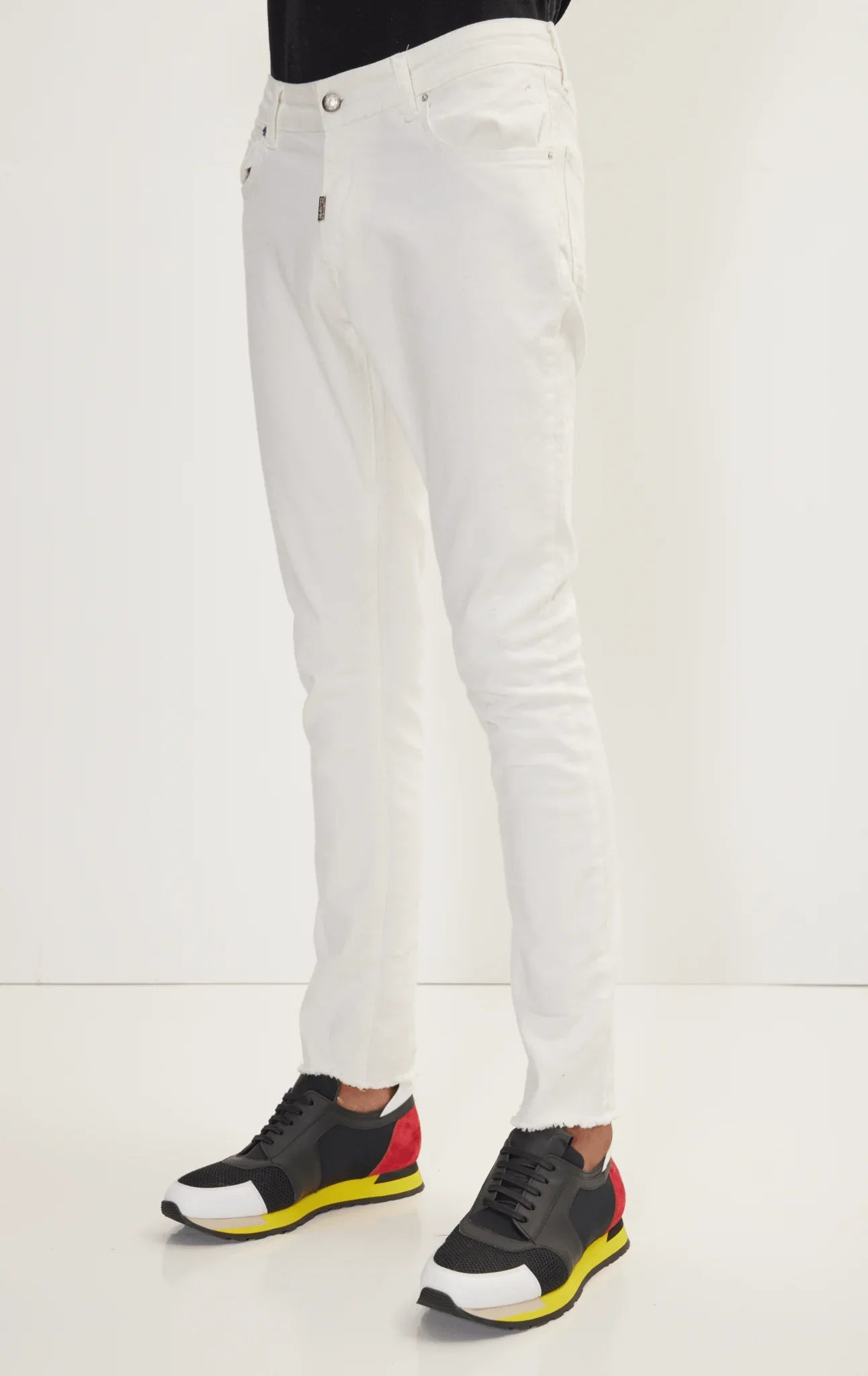 Distressed Ripped Hem Skinny Jeans - White