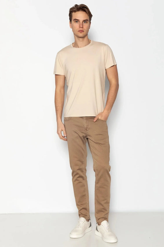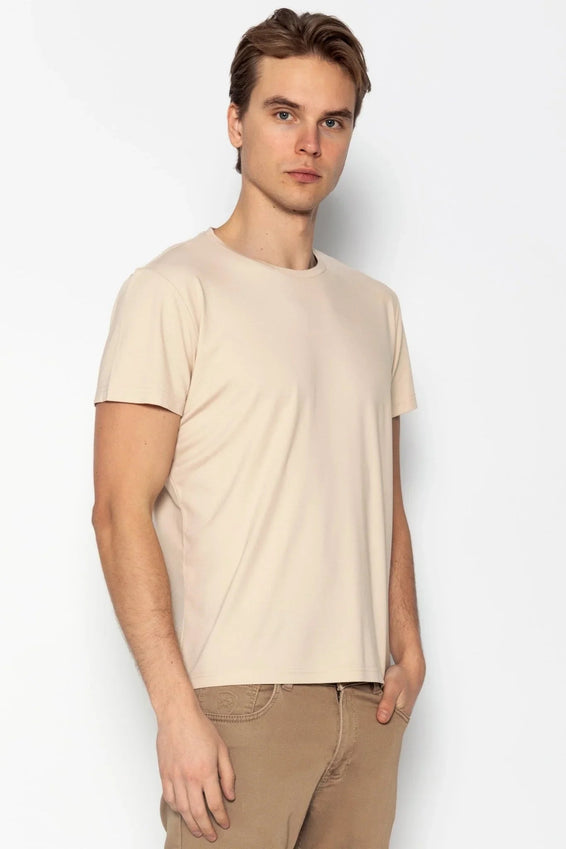 Fitted Lightweight Crew-Neck T-Shirt - Beige