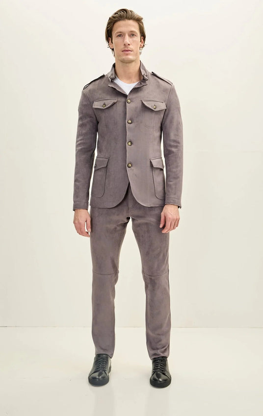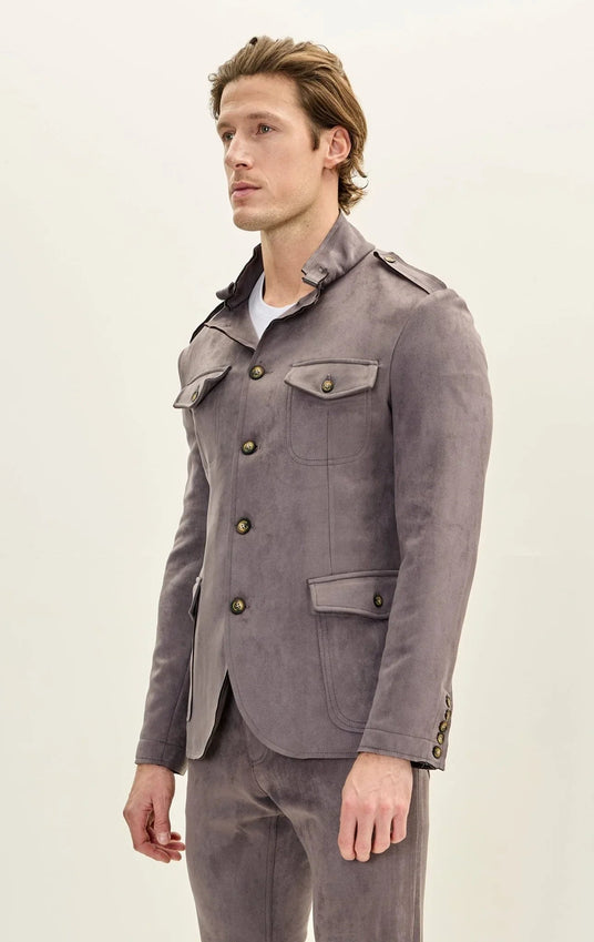 Microsuede Lightweight Safari Jacket - Grey