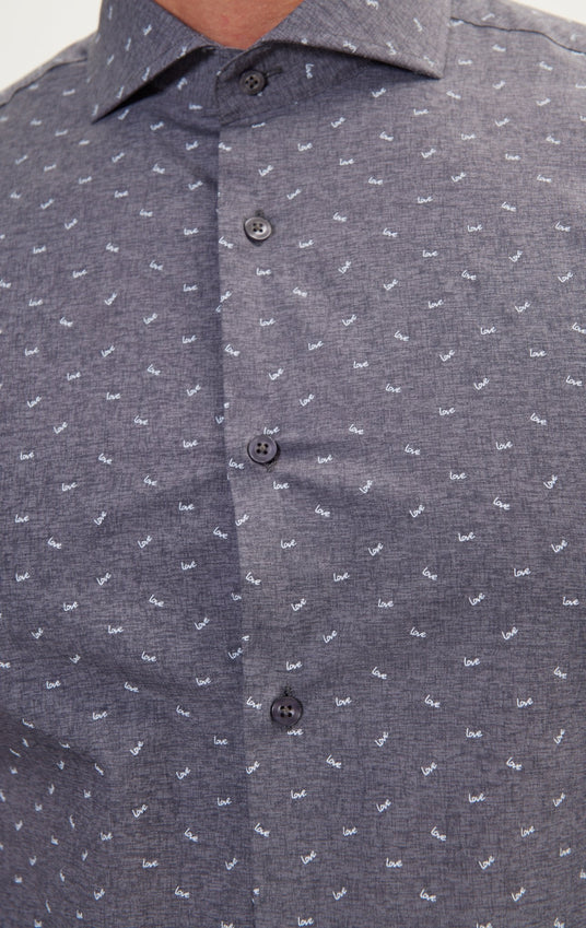 Love Print Pure Cotton Dress Shirt - Anthracite