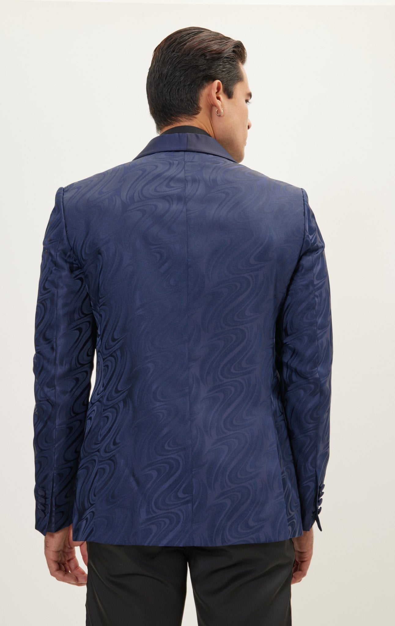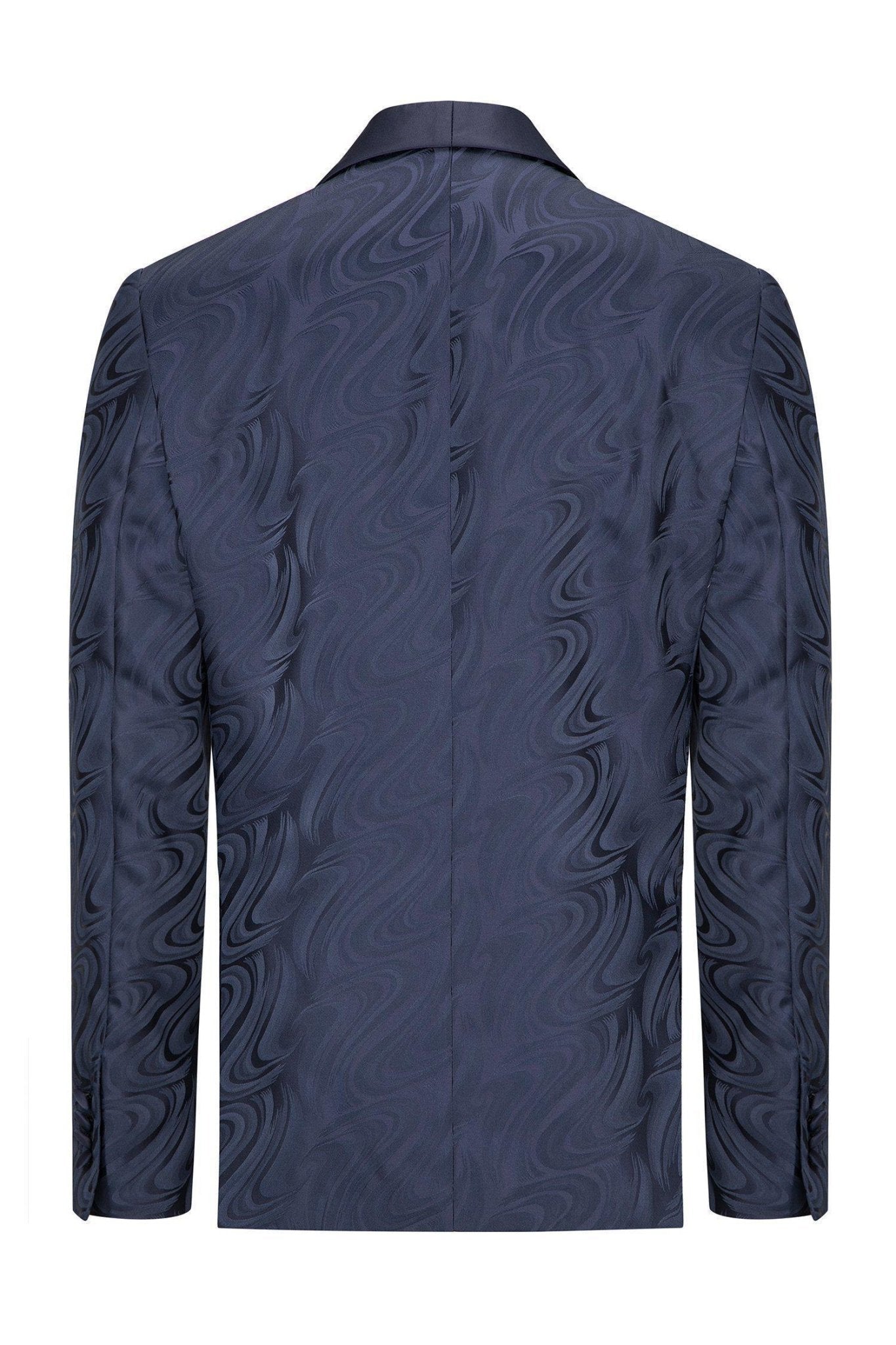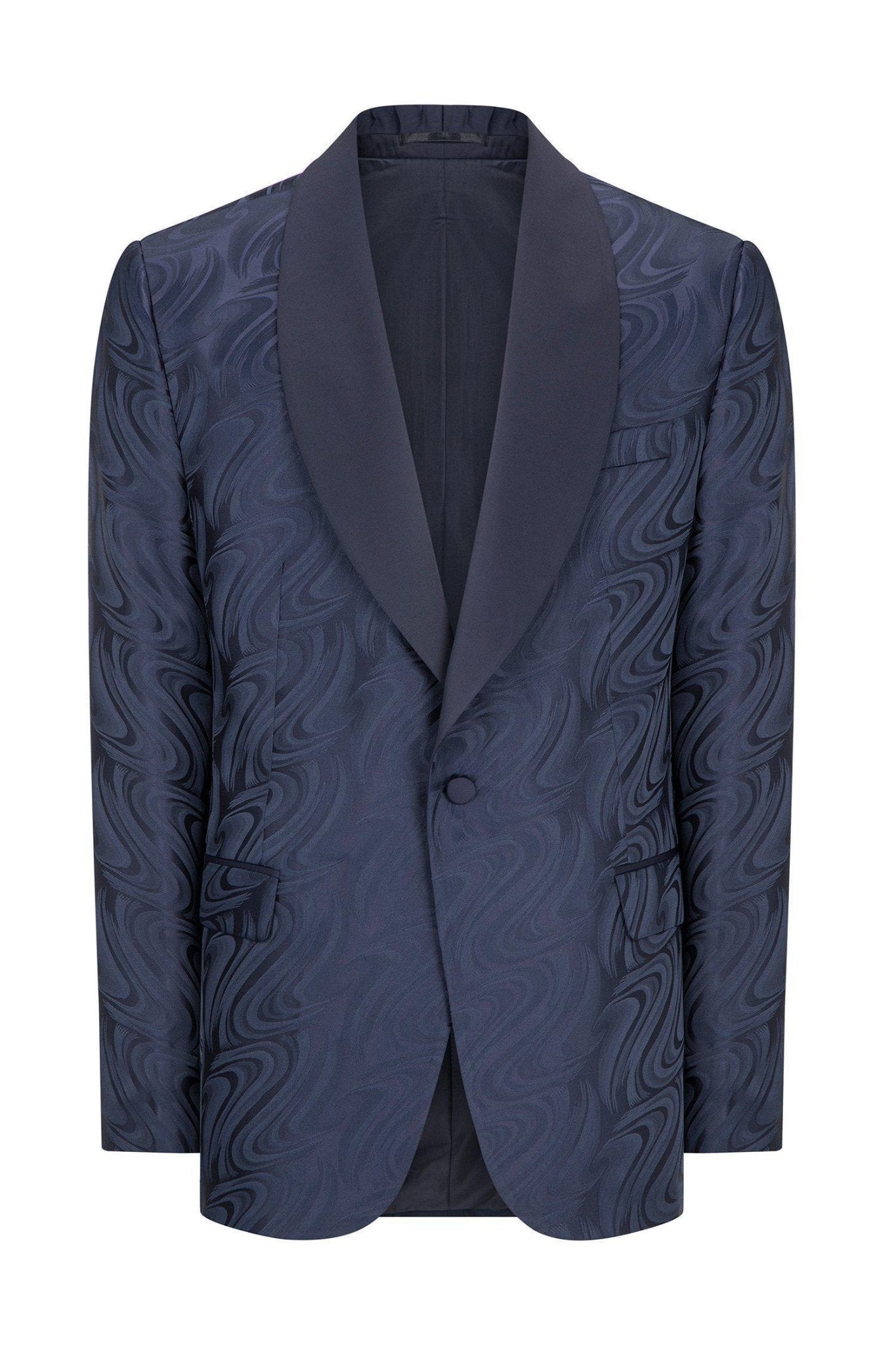 Psychedelic Texture Shawl Lapel Tuxedo Jacket- Navy