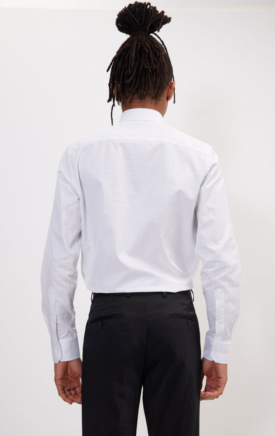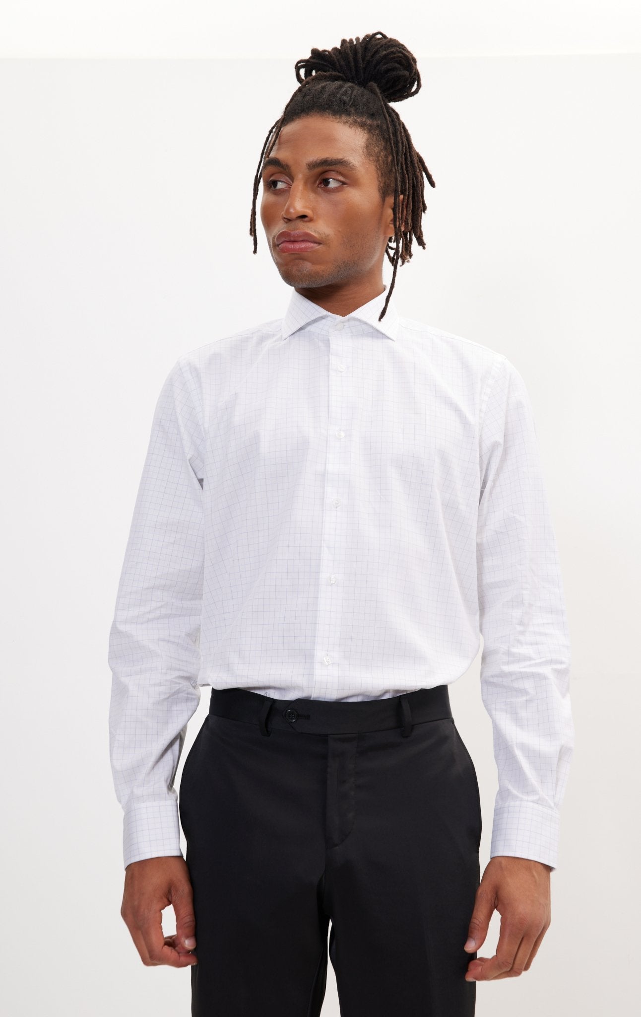 Pure Cotton French Placket Spread Collar Dress Shirt - White Graph