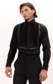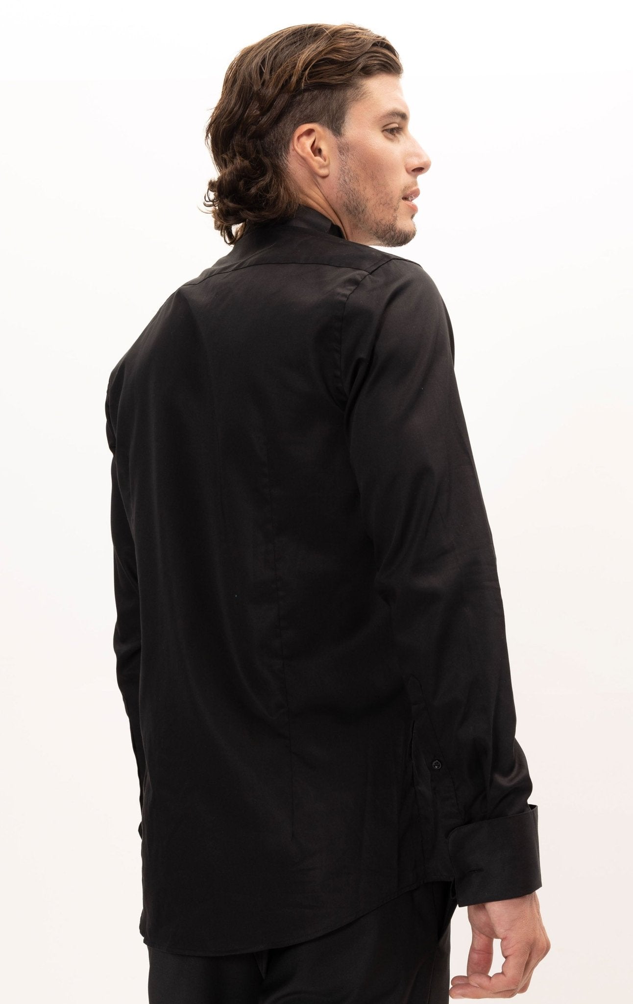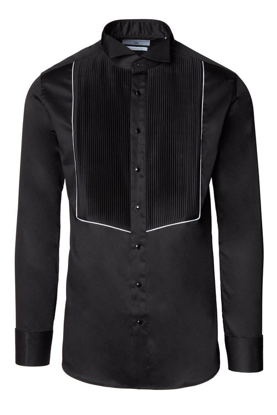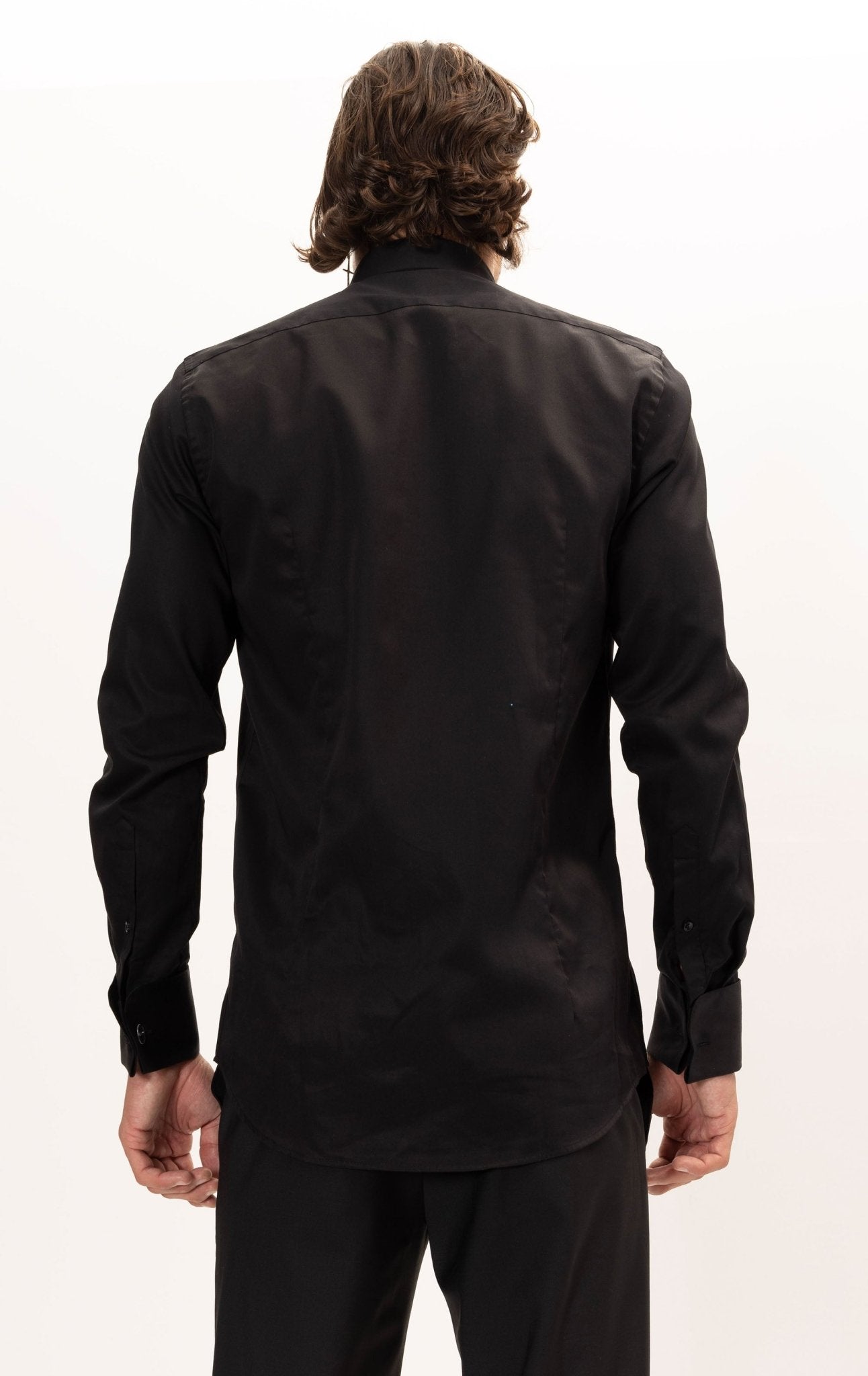 Pure Cotton Pleated Wing Tip Collar Shirt - Black White
