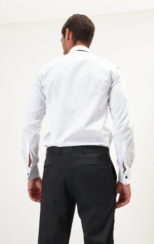 Pure Cotton Pleated Wing Tip Collar Shirt - White Black