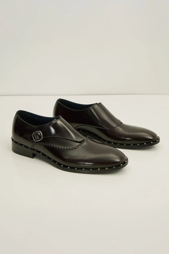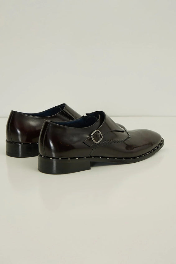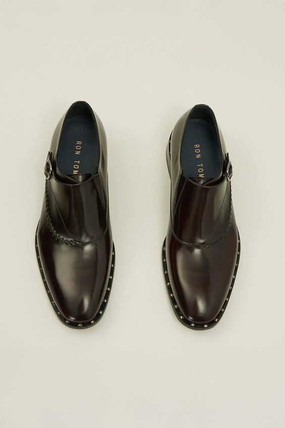 Polished leather and stitching detailed monkstrap's. Tonal leather linings and stacked heel.  Metal Buckle Stacked Heel Insole: Leather 100% Outer: Leather 100% Sole: Leather Made in Italy Style #30670