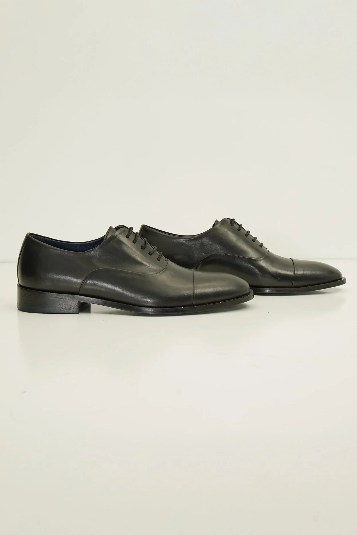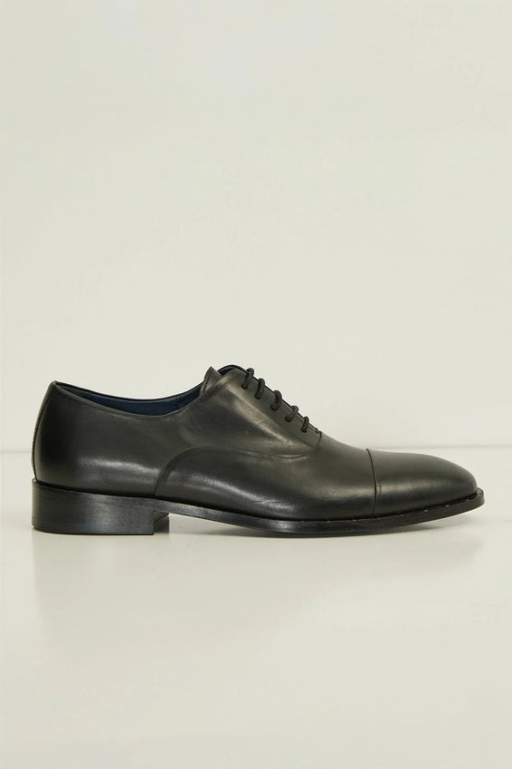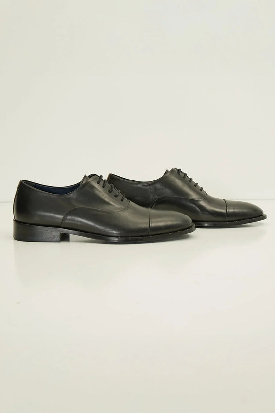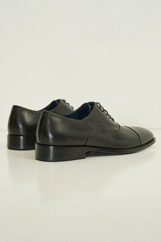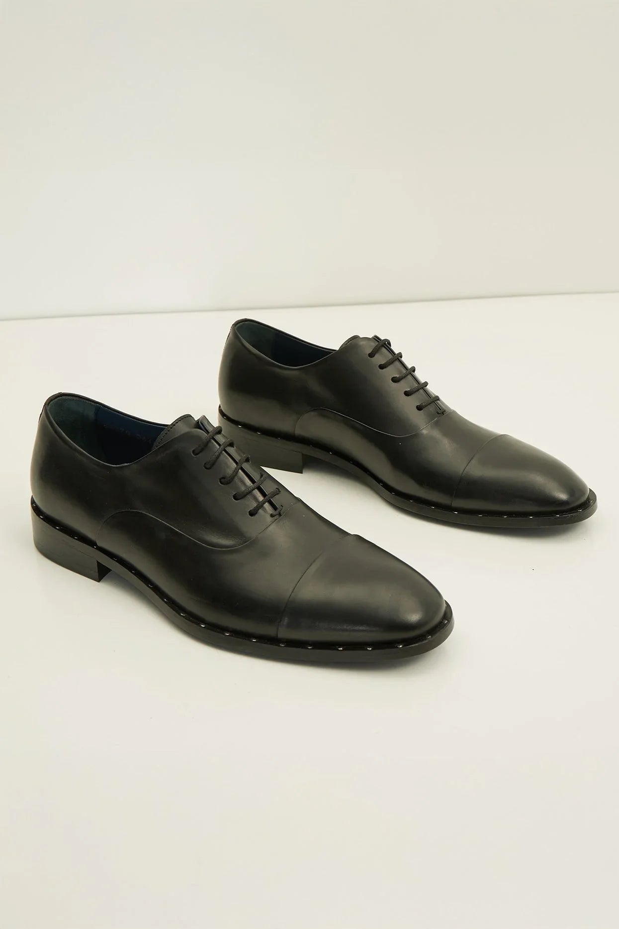 The Studded Cap Toe Oxfords Polished Leather - Black