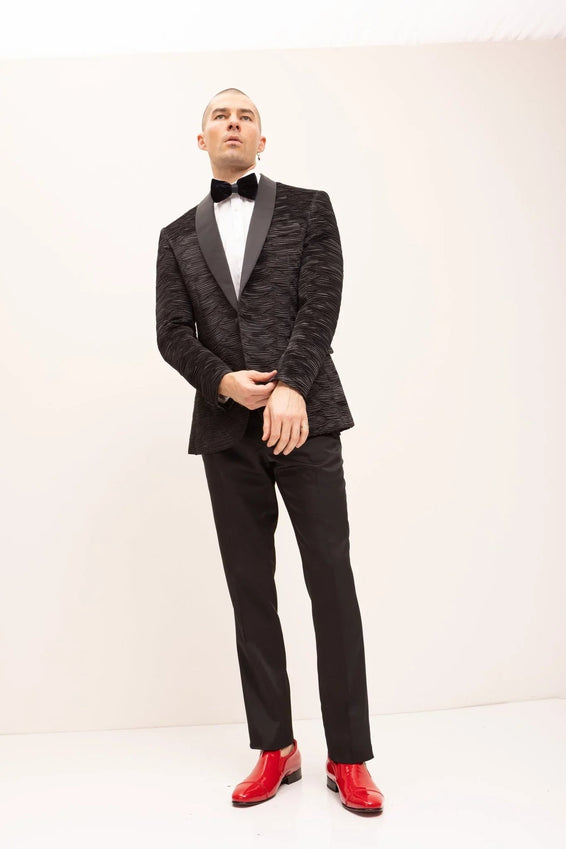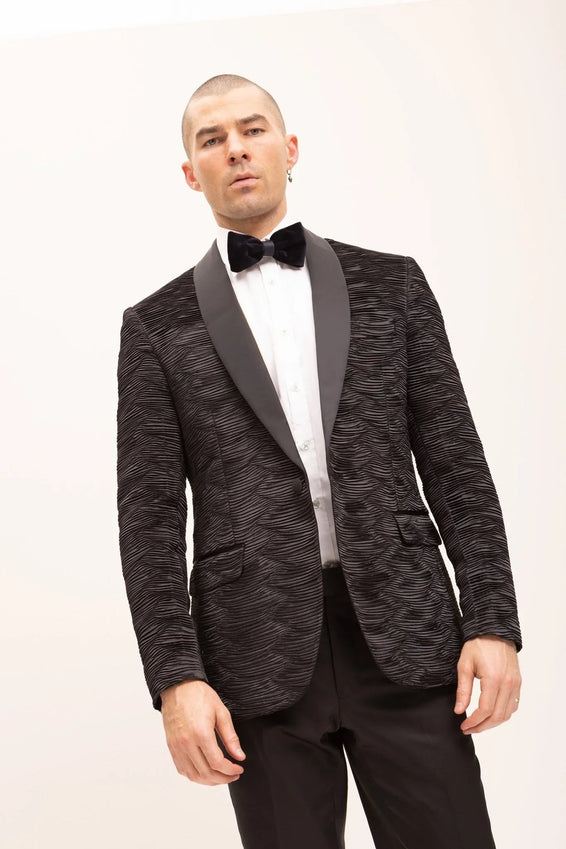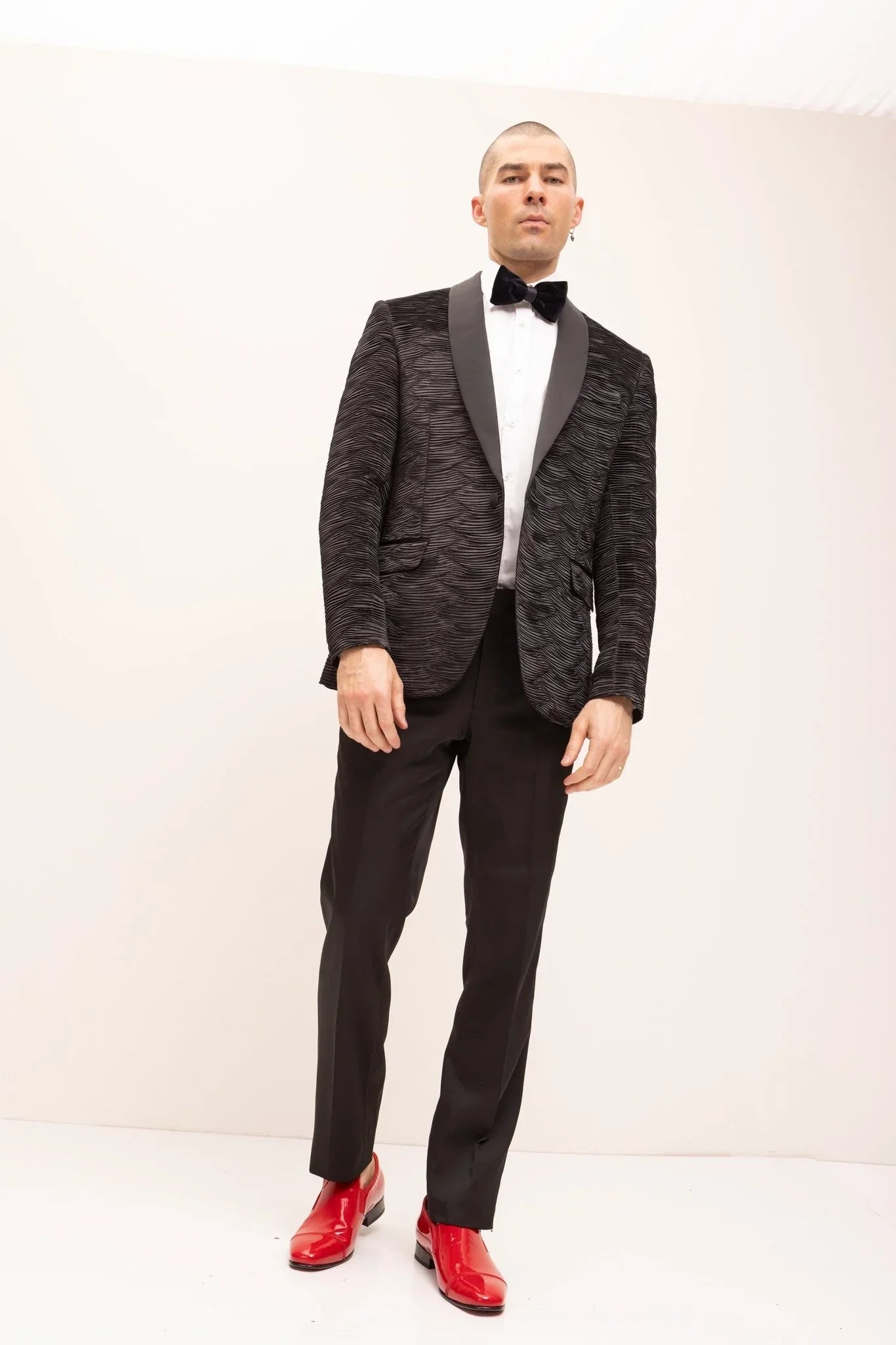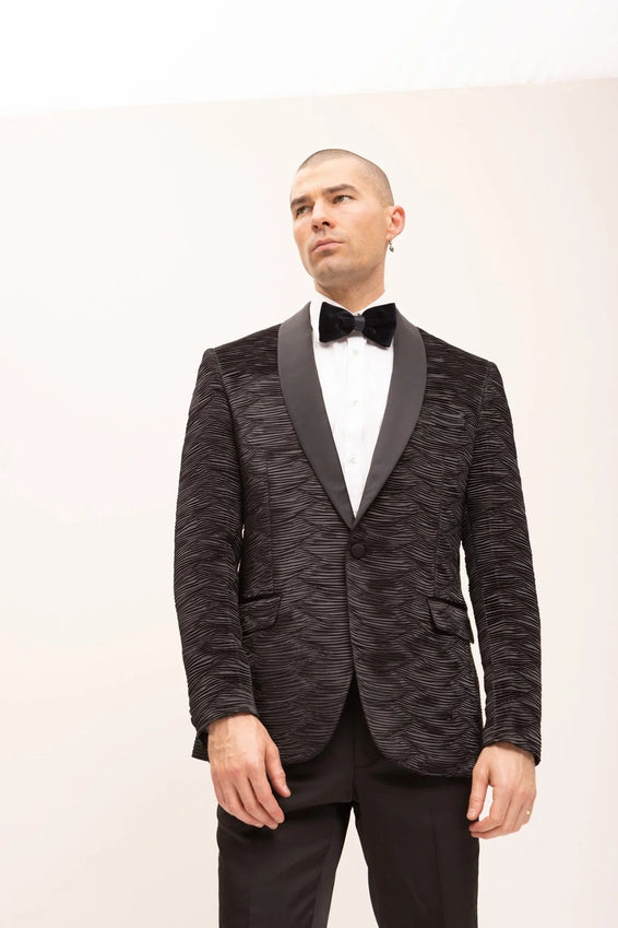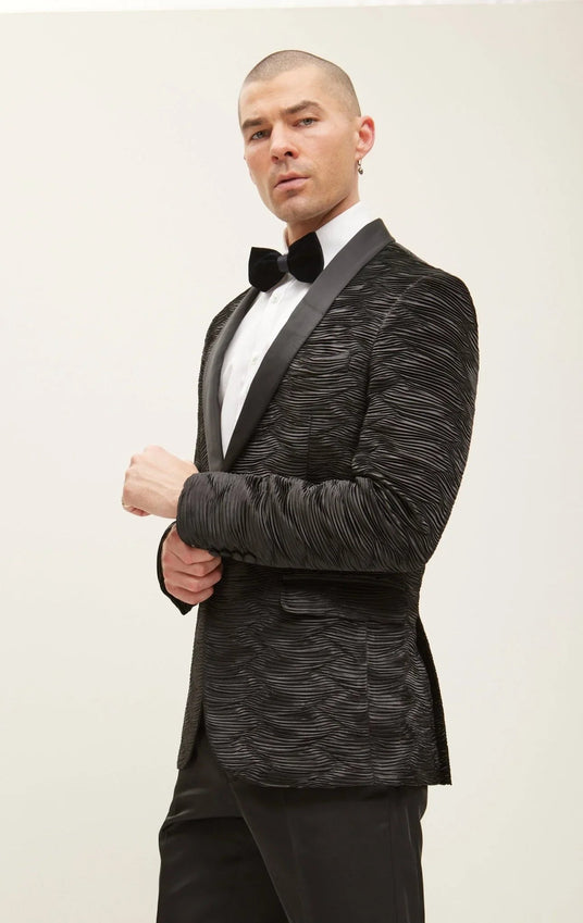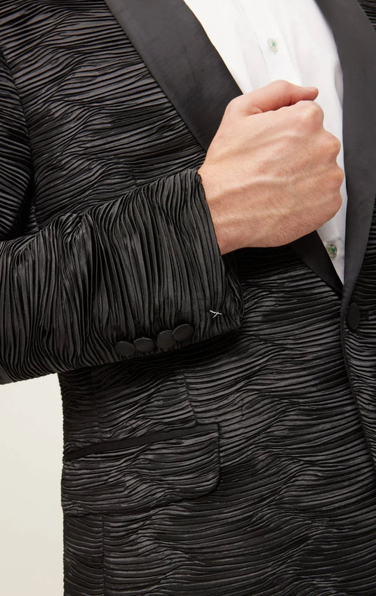 Allover Pleated Satin Tuxedo Jacket - Jet Black