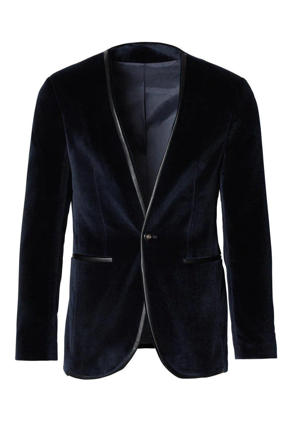 Collarless Italian Velvet Tuxedo Jacket - Navy