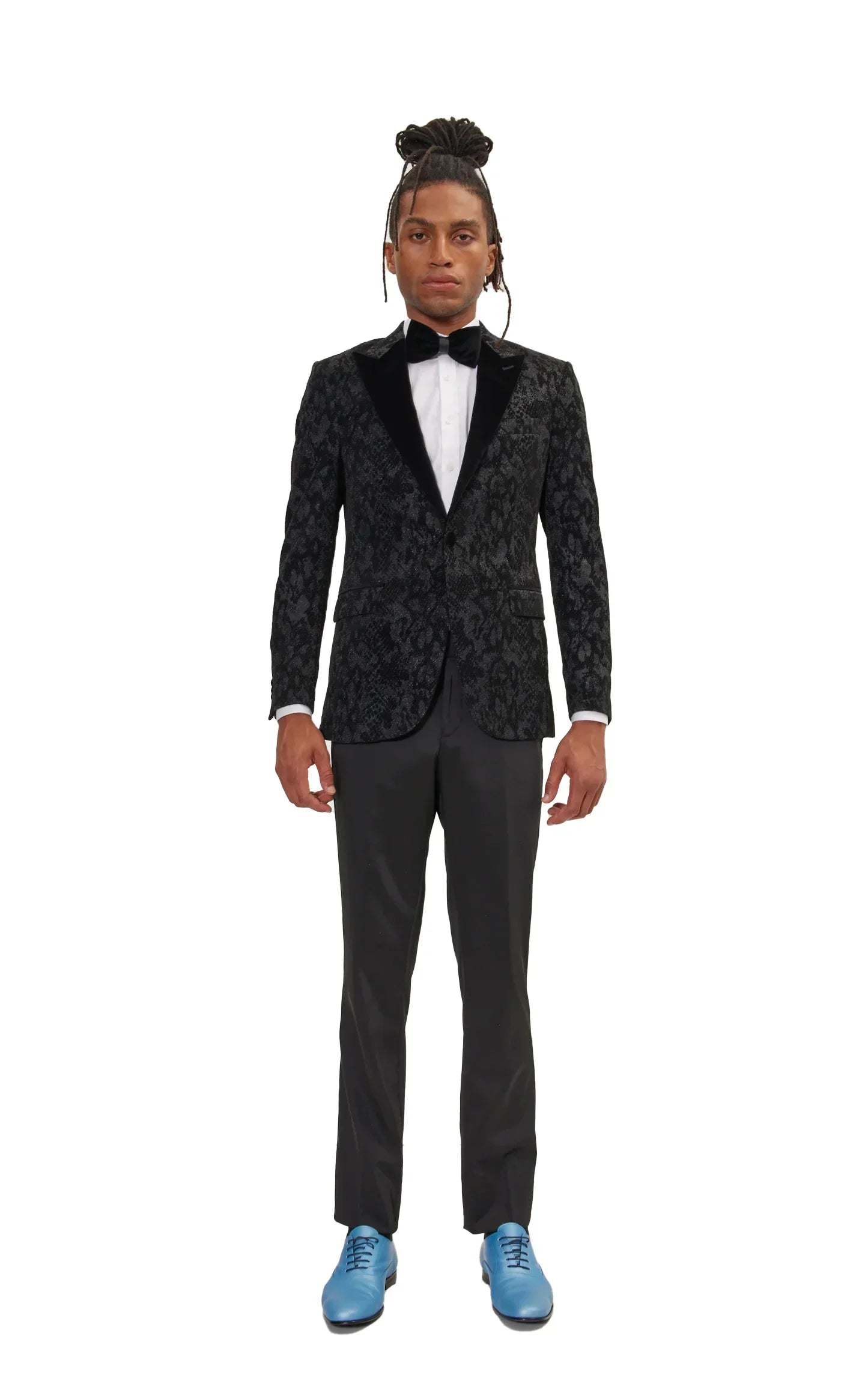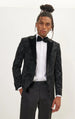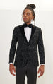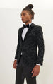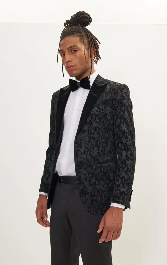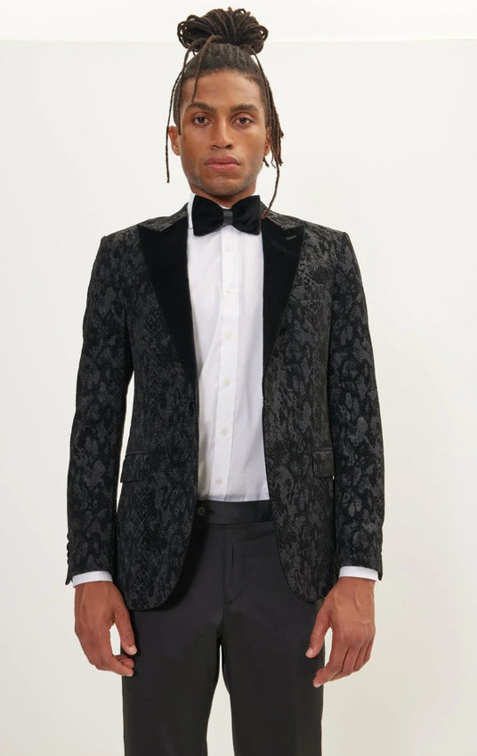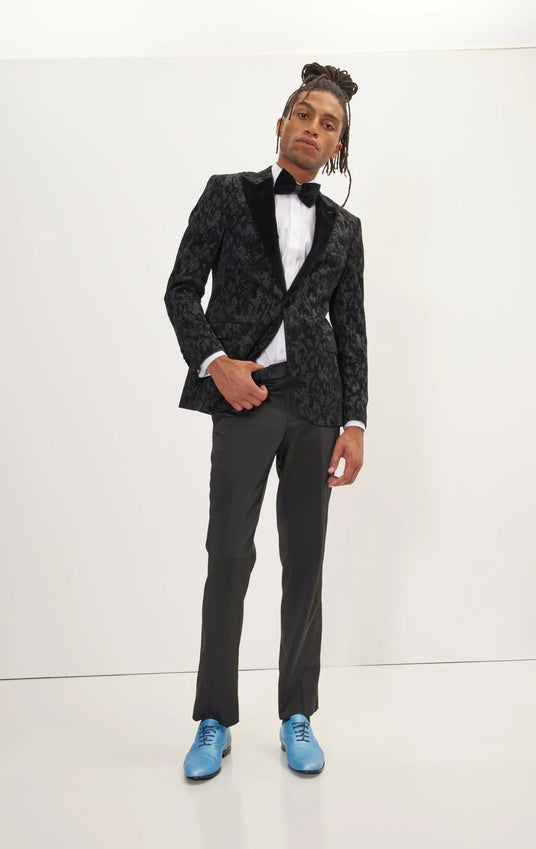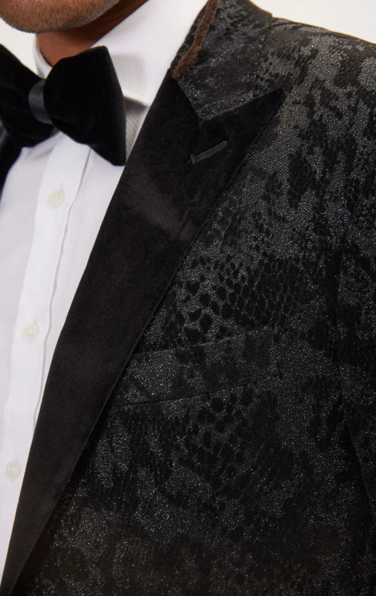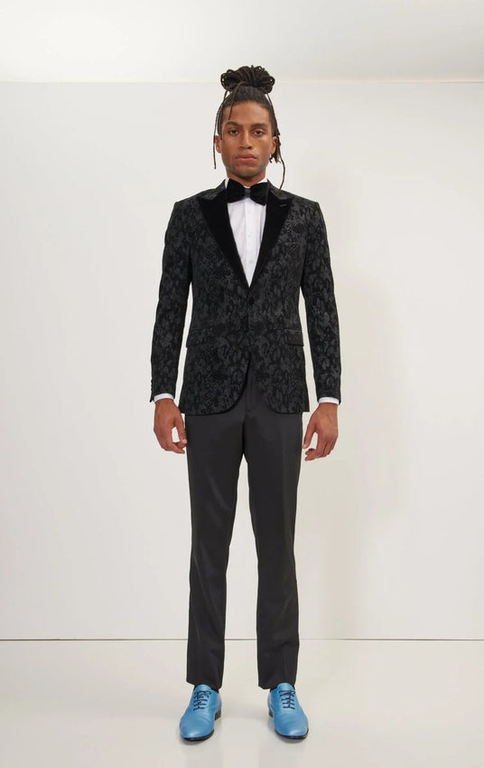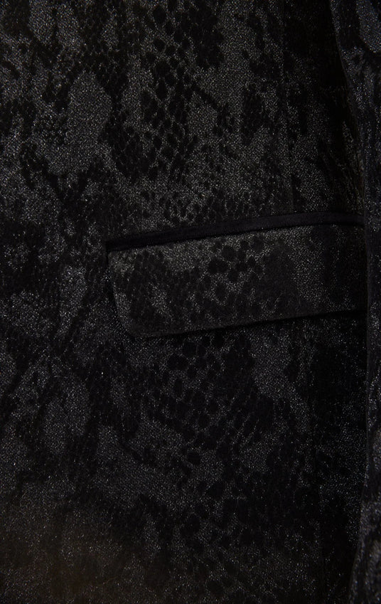 Metallic Velvet Flocking Tuxedo Jacket - Black