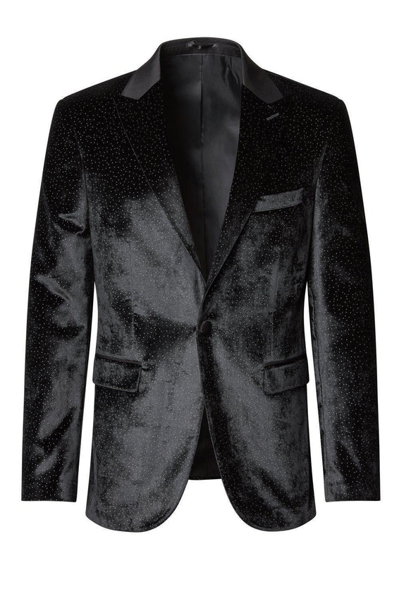 Polka Dot Pattern Italian Velvet Tuxedo Jacket - Black