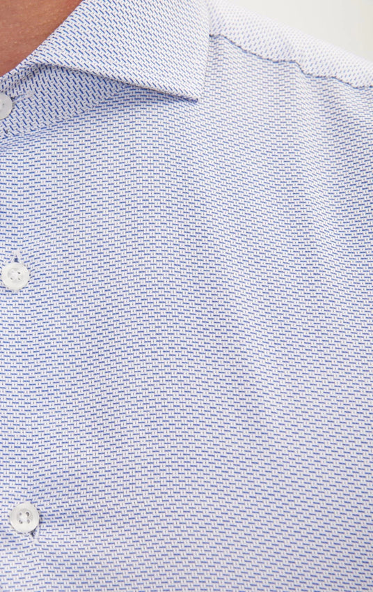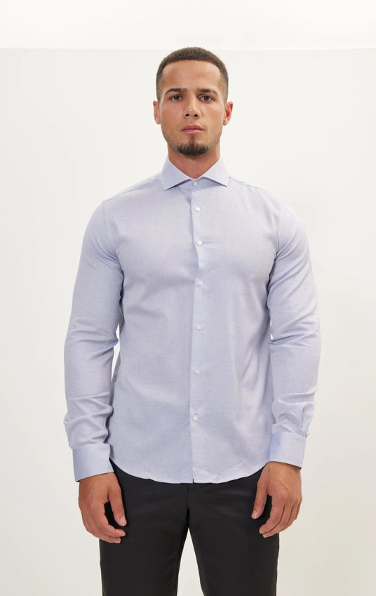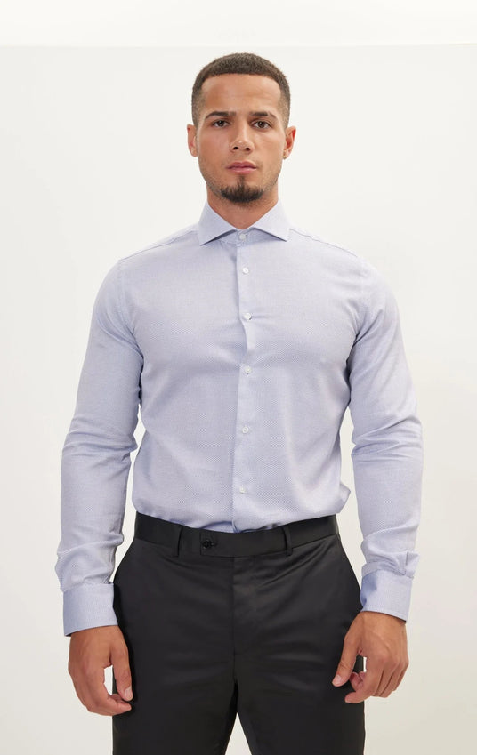Pure Cotton French Placket Spread Collar Dress Shirt - Navy White Jacquard