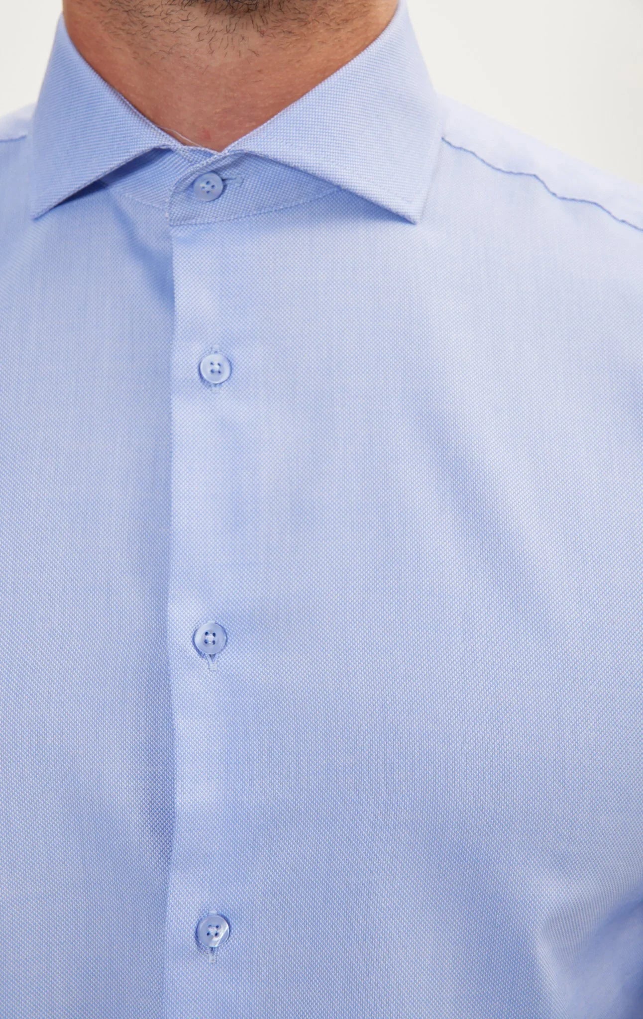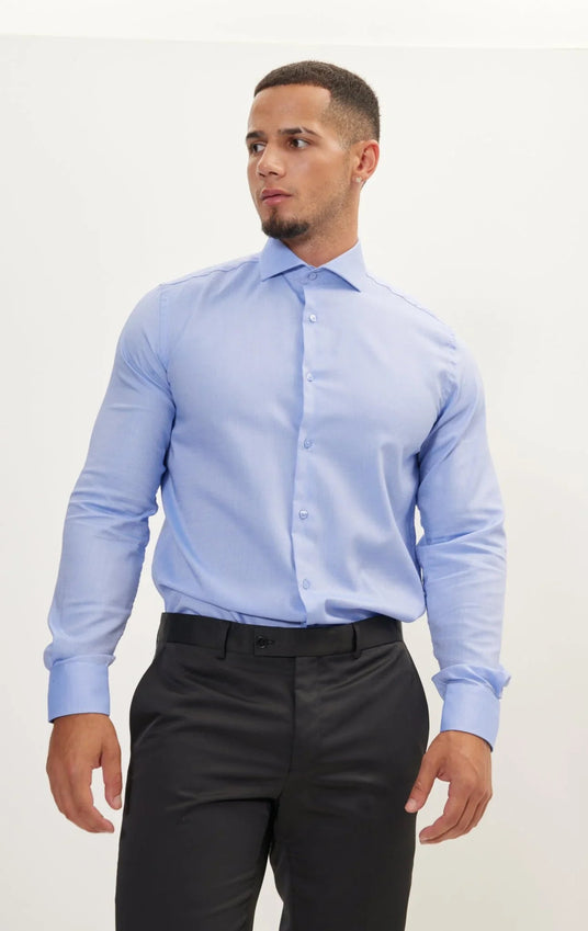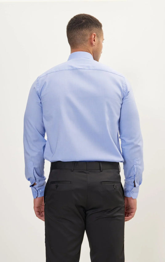 Pure Cotton French Placket Spread Collar Dress Shirt - Pinpoint Blue Blue