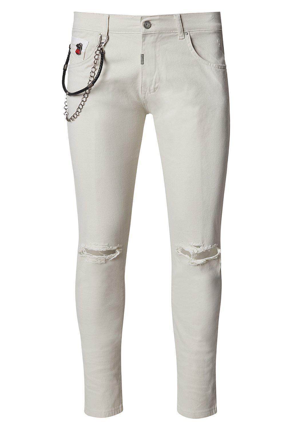 DETAILS Every day is a little unexpected, so are these updated slim fit chino jeans. Designed with comfort in mind in Europe from our smoothest cotton blend, featuring classic face pocket detailing and slit knees. Finished with a double leather chord chain and contrast stitching. SIZE + FITRegular fit, to find your...