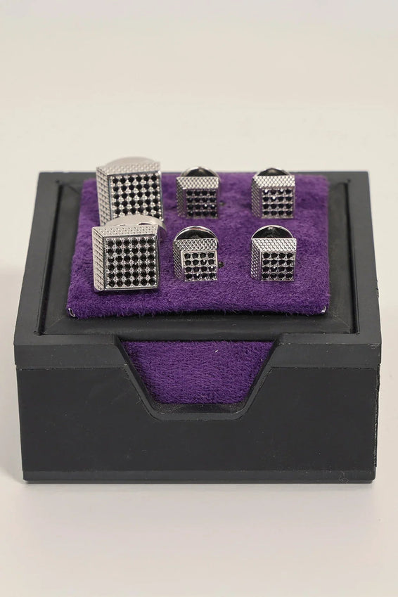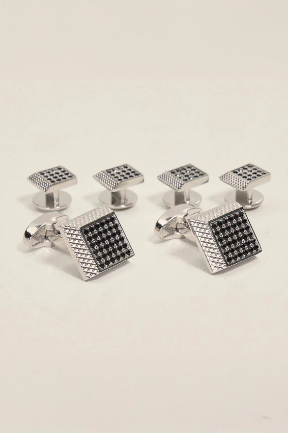 Stainless Steel Dark Stone Cufflinks Stud Set Silver